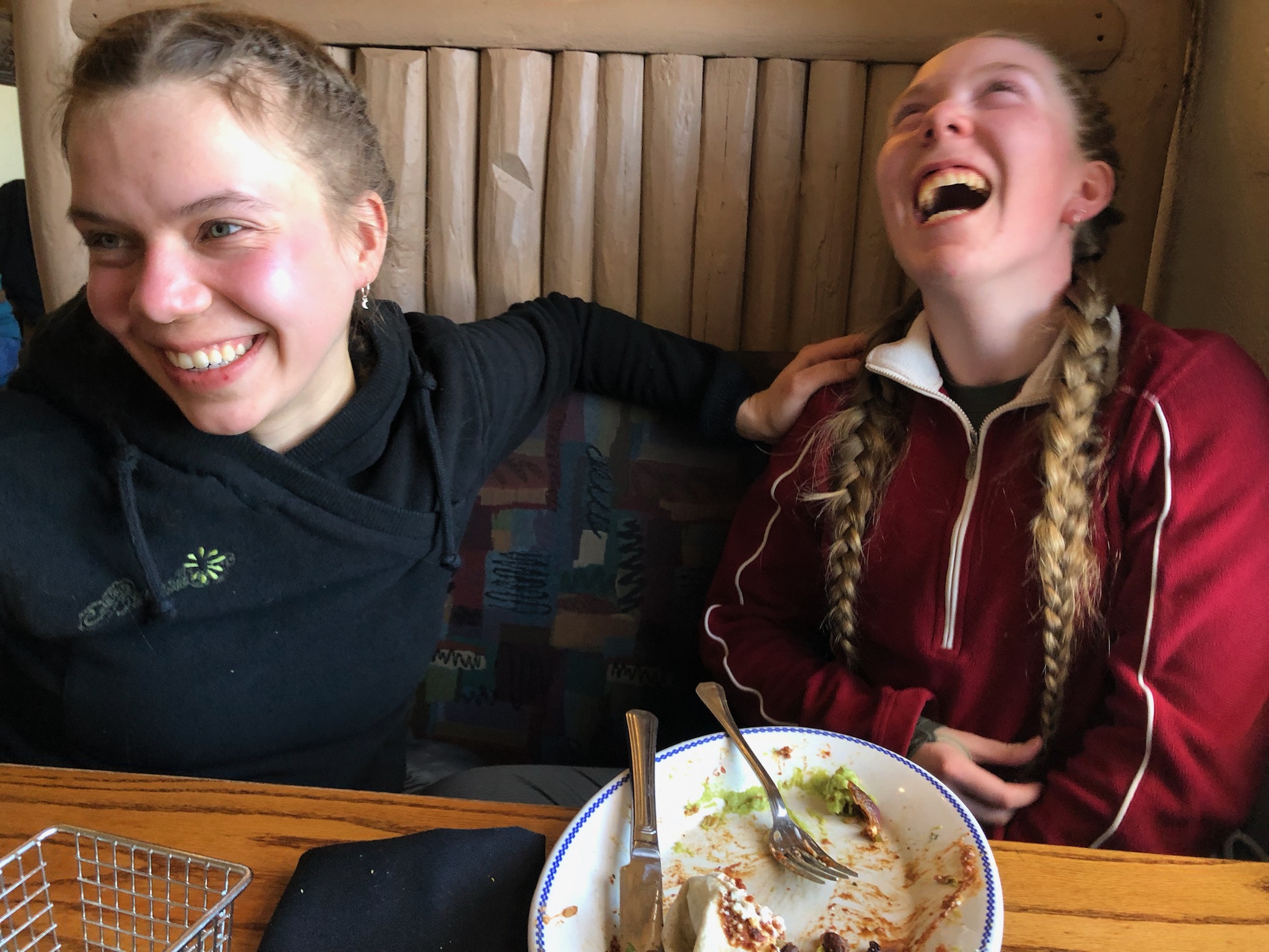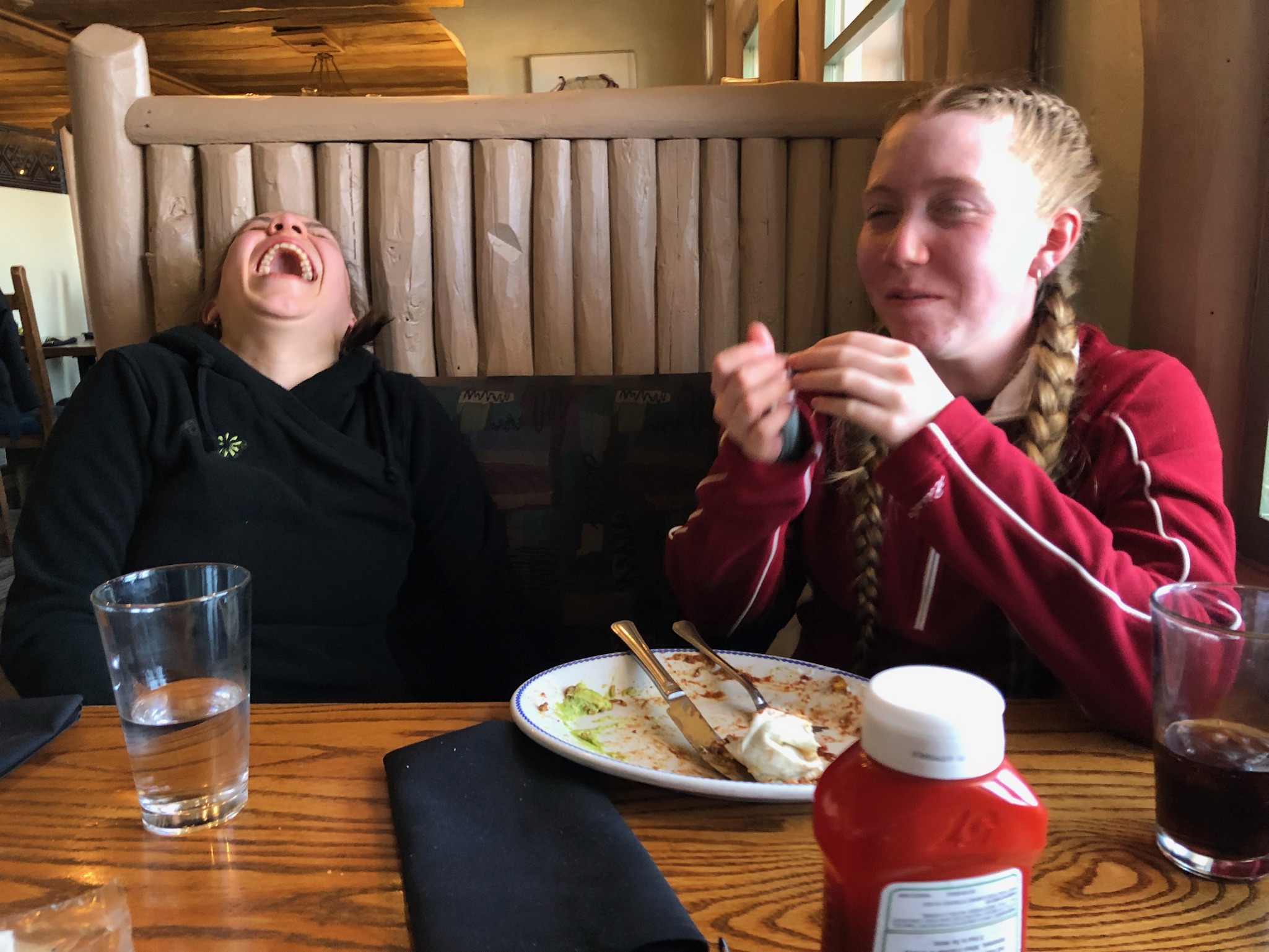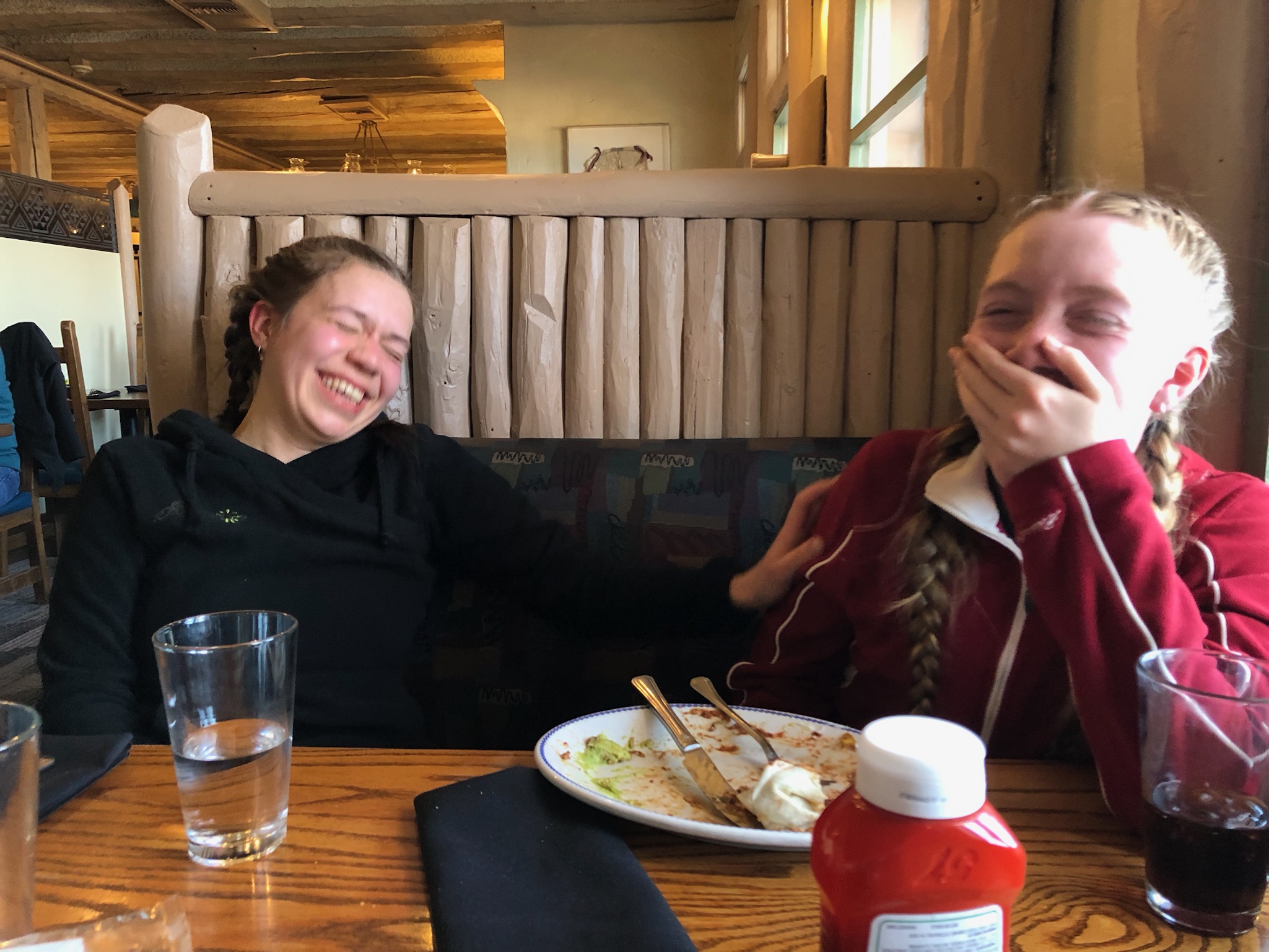 So, despite our disappointment of not camping below the Rim, and aborting our Grandview hike, spirits were pretty high. We survived the return to the rim, I recovered my breathing, and we had a lovely consolation meal at the Bright Angel Restaurant on the South Rim. And with the realization that we were alive with most of our parts intact, we experienced a slight release of tensions.