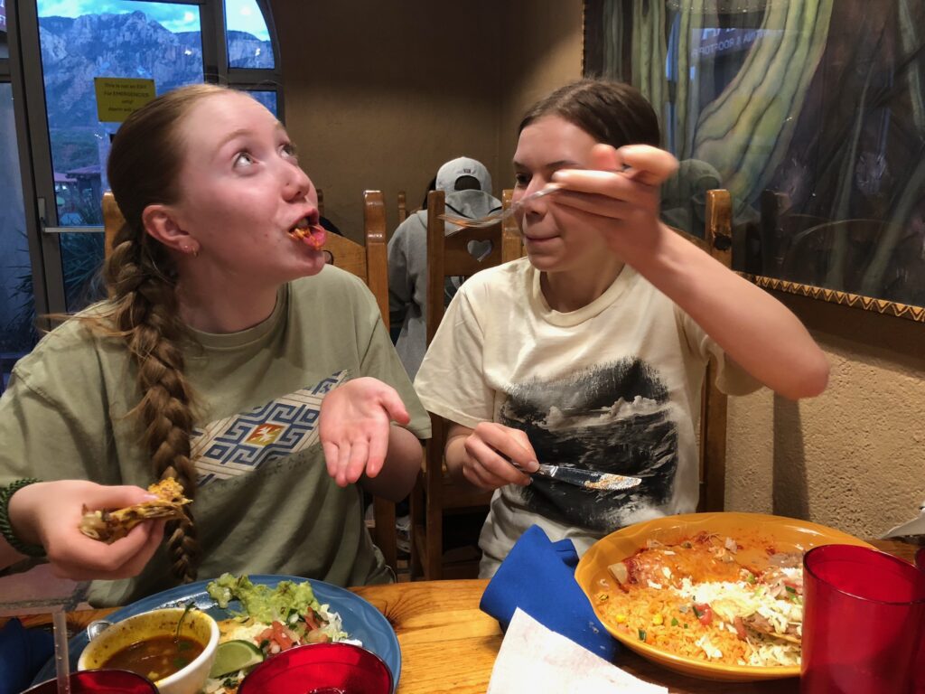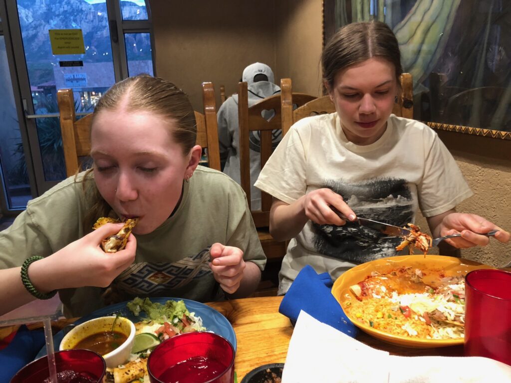 Sedona wears its tourist-town status comfortably. The main strip is lined with galleries, crystal shops, southwestern art boutiques, and enough places selling dreamcatchers to supply every bedroom in North America. We wandered in and out, the girls browsing jewelry and discussing the merits of various geodes, while I tried to look interested in turquoise pendants. It’s a pleasant way to kill time, even if you’re not buying anything. The vibe is relaxed, unhurried, and thoroughly committed to the whole “mystical desert energy vortex” thing.